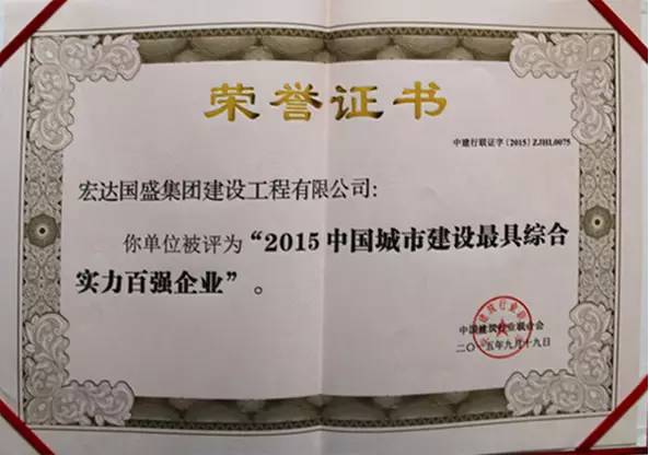 熱烈祝賀宏達(dá)國盛集團(tuán)建設(shè)工程有限公司被評選為“2015中國城市建設(shè)最具綜合實(shí)力百強(qiáng)企業(yè)”